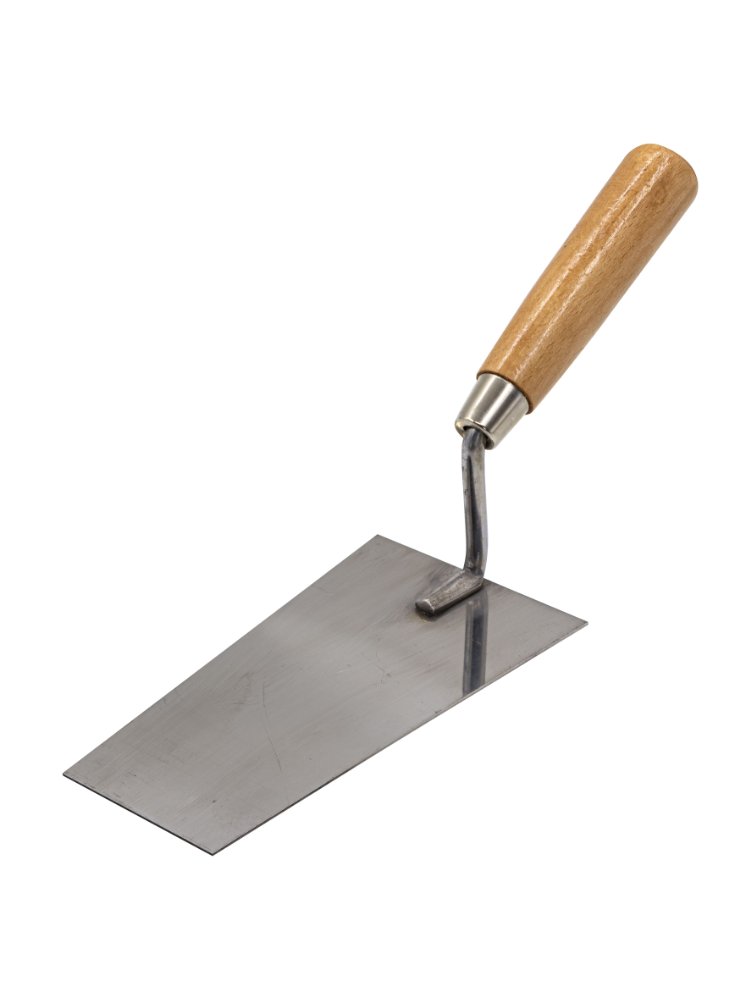 Нержавеющая сталь 0,8 мм, рукоятка из бука, пропитанного воском. Применение: для размешивания, отмеривания, нанесения и разравнивания гипсовых или цементных растворов. Удобная трапециевидная кельма 160×60 мм с деревянной ручкой для точного нанесения и выравнивания штукатурки, устойчива к коррозии.