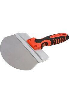 В шпателях серии «Black White» используется алюминиевая проставка (планка), которая надёжно удерживает нержавеющее полотно, компенсирует нагрузку на лезвие при работе, так же предотвращает деформацию полотна при работе. Прочный шпатель 200 мм из нержавеющей стали для ведра с удобной 2К ручкой — долговечный и эргономичный инструмент для смесей и шпатлёвки.
