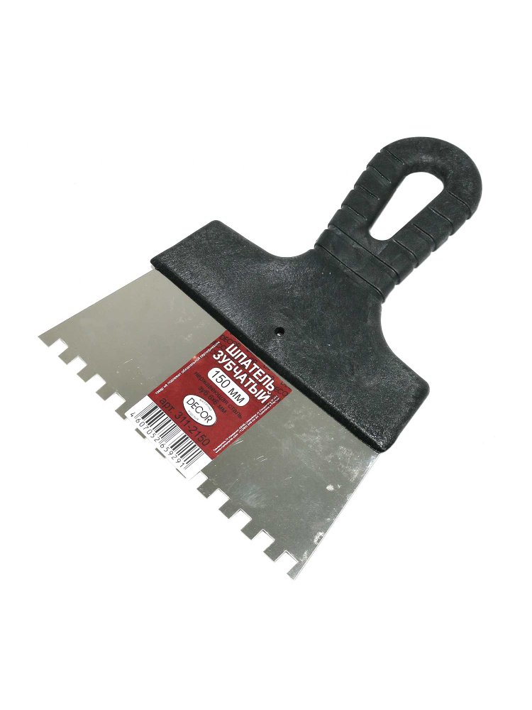 Шпатель нерж.сталь, пласт.руч. 150мм, зуб 6*6мм (НАМ)