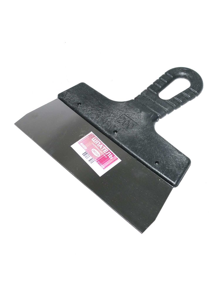 Шпатель из нержавеющей стали, пластмассовая ручка. Назначение: Для заделки швов и трещин, нанесения и выравнивания строительных растворов. Прочный шпатель из нержавеющей стали шириной 200 мм с удобной пластиковой ручкой для качественного нанесения и выравнивания смесей.