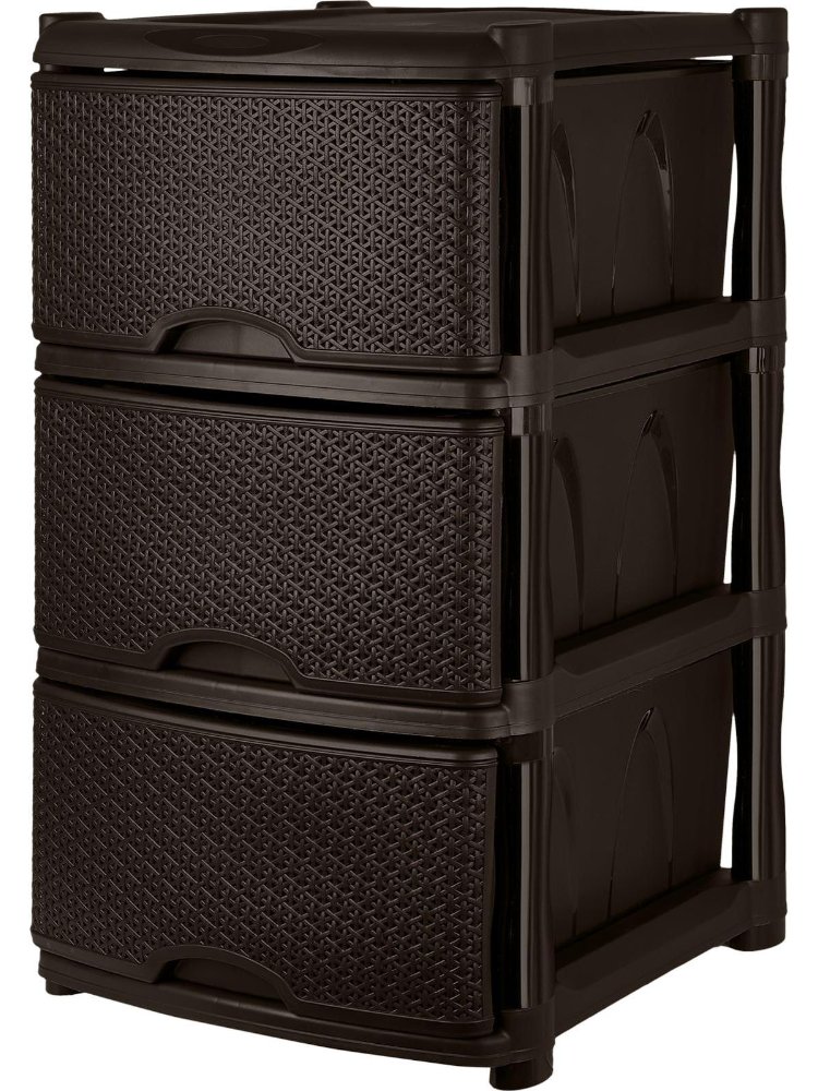 Идеальное решение для хранения инструментов, стройматериалов или бытовых мелочей — стильный комод на 3 секции в дизайне «темный каштан», с оригинальной имитацией ротанга. Подходит для гаража, мастерской, кладовой, дачи и дома.