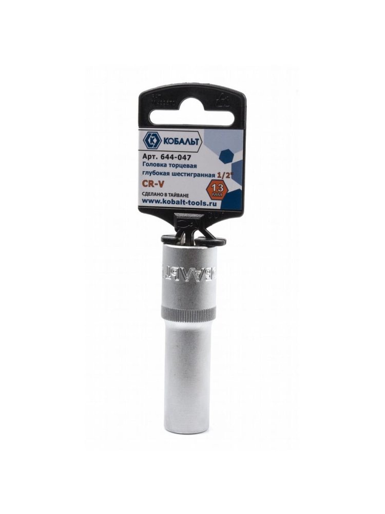 Профессиональное решение для сложных работ с крепежом — глубокая торцевая головка 1/2", 13 мм КОБАЛЬТ, арт. 644-047. Идеально подходит для обслуживания автомобилей, сборки мебели, ремонта бытовой техники и монтажных работ, обеспечивая надежный захват даже на длинных шпильках и выступающих болтах.