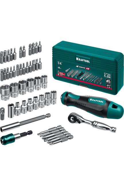 Набор бит и головок с битодержателем и трещоткой 49 пр. 25816 X-Drive KRAFTOOL в Вяземский