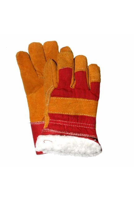 Перчатки комбинированные из качественного говяжьего спилка (толщина 1,2мм) и плотной х/б ткани (саржа). Цельнокроеная ладонь из спилка. В летнем варианте модели ладонь и большой палец усилены дополнительным слоем спилка, флисовая подкладка на ладонной части, манжет - жесткая крага. Зимний вариант модели идет без усиления ладони, утеплен искусственным мехом. Цвет: желтый/красная ткань Тепло, прочность и защита рук при работе зимой и в межсезонье, усиленный спилок и утеплитель для комфорта в строительстве и ремонте.