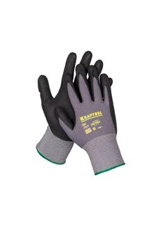 Нейлоновые перчатки покрытые микроточкой из ПВХ позволяют работать с любыми мелкими предметами, при этом не теряя тактильной чувствительности. Такие перчатки обладают антистатическим эффектом. Благодаря особенной "дышащей" структуре материала микроточки ПВХ, обеспечивается высокий уровень комфорта для рук работника в процессе его работы. Перчатки защищают руки от механических повреждений, а также всевозможных загрязнений. Особый способ нанесения микроточек ПВХ гарантирует крепкий захват гладких, мокрых, скользких или масляных предметов, позволяя выполнять работу более качественно. При работе в таких нейлоновых перчатках, даже с очень мелкими предметами, исключено появление на поверхности ворсинок и следов пальцев рук, что способствует "чистой работе". Износостойкие нейлоновые перчатки с нитриловым покрытием для надежной защиты рук при строительстве, ремонте и механосборочных работах.