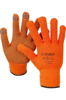 Точечное ПВХ покрытие обеспечивает высокую стойкость к истиранию и превосходно защищает ладонь. Яркий сигнальный цвет перчаток обеспечивает дополнительную безопасность при работе в условиях плохой видимости. Выполнены из акриловой пряжи, которая отличается высокой объемностью, за счет чего теплозащитные свойства перчаток намного выше, чем у аналогов из натуральной шерсти. Махровая внутренняя поверхность перчатки обеспечивает дополнительную термозащиту рук при работе на холоде. Утеплённые перчатки с акриловым начёсом и ПВХ для надёжной защиты рук при строительных работах, обеспечивают тепло, сцепление и видимость.