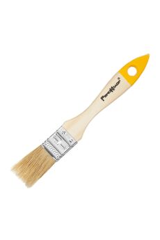 Натуральная светлая щетина. Предназначена для всех типов лакокрасочных материалов. Кончики щетины на конце расщеплены для лучшей впитываемости краски. Бандаж изготовлен из жести. Для надежного удержания щетины используется клей на эпоксидной основе и деревянные клинья. Рукоятка деревянная отшлифована, не покрыта. Кончик кисти окрашен цветной краской. Плоская кисть 25 мм с натуральной щетиной, удобна для точных работ, равномерно наносит краску, легко очищается, идеальна для дома и ремонта.