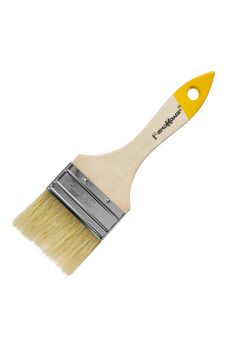 Натуральная светлая щетина. Предназначена для всех типов лакокрасочных материалов. Кончики щетины на конце расщеплены для лучшей впитываемости краски. Бандаж изготовлен из жести. Для надежного удержания щетины используется клей на эпоксидной основе и деревянные клинья. Рукоятка деревянная покрыта лаком. Кончик кисти окрашен цветной краской. Плоская кисть 63 мм с натуральной щетиной для ровного нанесения красок и лаков. Идеальна для отделочных и ремонтных работ разного масштаба.