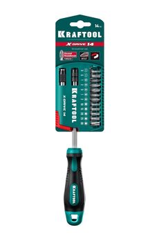 Отвертка-битодержатель KRAFTOOL X-Drive в наборе с насадками изготовлена из высокопрочной Cr-Mo стали. Универсальный набор бит и битодержатель подходят для работы с шуруповертом 14 предметов, сменные биты, магнитный держатель, X-Drive рукоятка для мощности — универсальный комплект для всех видов крепежа.