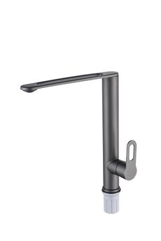 Стильный однорычажный смеситель с поворотным изливом, из латуни, цвет "серый жемчуг", устойчив к коррозии, легко управляется, простой монтаж.