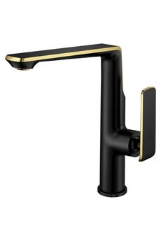 Корпус: высококачественная латунь; Покрытие: акрил; Цвет: чёрный с золотом; Аэратор: G-eco; Керамический картридж: G-ceramic; Технология: TermoSAFE; Гарантия: 7 лет. Стильный черно-золотой смеситель, устойчив к царапинам и налету, керамический картридж, высокий излив, удобно для большой посуды.