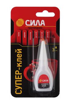 Супер-клей СИЛА, идеально подходит для быстрого и эффективного ремонта различных предметов мебели, интерьера и т.д. Накрепко схватывает дерево, резину, стекло, фарфор и пластик, при этом супер клеи экономично расходуются и высыхают за несколько секунд. * 100% цианоакрилат - высокая концентрация клеящих ингредиентов, обеспечивает крепкое, мгновенное соединение частей различных предметов. * Удобный само вскрывающийся тюбик - при накручивания колпачка, обеспечивает быстрое и аккуратное использование. * Предусмотрена перфорация "ёлочка" под тюбиком для извлечения его быстро и без усилий. Суперклей быстро и прочн