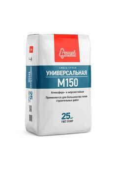 Универсальная смесь М150 25 кг: высокая прочность, для кладки, штукатурки и выравнивания стен и полов, устойчива к влаге и перепадам температур.