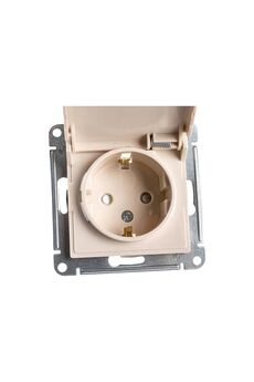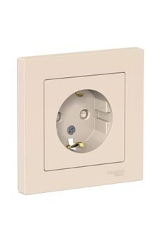 Моноблочная розетка с заземлением 16А, удобный монтаж, бежевый цвет, прочный корпус, безопасна и подходит для дома и офиса.
