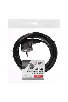 Трёхжильный гибкий шнур с вилкой, длина 3 м, сечение 0,75 мм², подходит для устройств с заземлением, надёжная изоляция, универсален в применении.