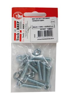Винт DIN965 с потайной головкой M6х30 оцинк. в комплекте с гайкой и шайбой (8 шт) от Tech-Krep. Прочный, защищен от коррозии, для стройки и ремонта.
