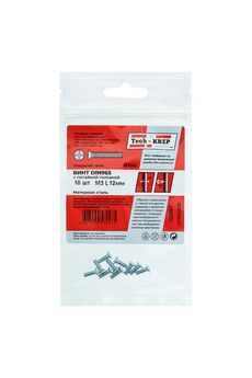 Винт DIN965 с потайной головкой, оцинкованный, М3х12, 10 шт. в упаковке Tech-Krep. Прочный, устойчивый к коррозии крепеж для дерева и металла.