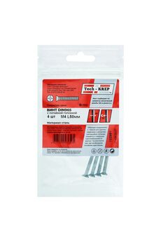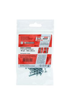 Винт DIN 965 с потайной головкой, оцинкованный, М4х50, 4 шт. в пакете Tech-Krep. Прочный, устойчив к коррозии, для дерева, металла и пластика.