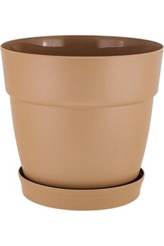 Прочный пластиковый горшок 1,1 л для комнатных растений, с дренажом и лаконичным дизайном под молочный шоколад, идеален для современных интерьеров.