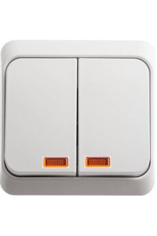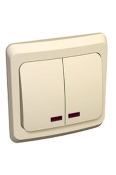 Двухклавишный выключатель с подсветкой и изоляцией, для надежного и удобного управления освещением, монтаж в стандартный подрозетник.