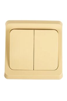 Двухклавишный выключатель 10А с накладным монтажом, кремовый корпус, управление двумя группами освещения, простая установка.