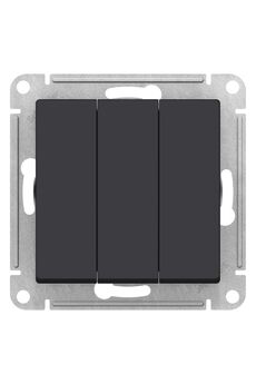 Трёхклавишный выключатель чёрный, для самостоятельного управления тремя группами освещения, стильный дизайн, лёгкий и надёжный монтаж.