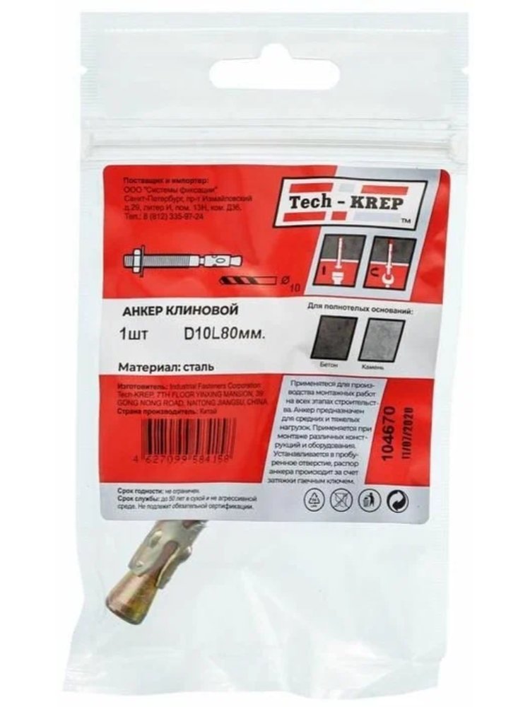 Анкер клиновой 10х80 (1 шт) - пакет Tech-Krep
