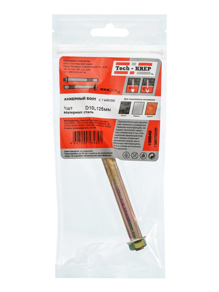 Анкерный болт с гайкой 10х125 (1 шт) - пакет Tech-Krep в Вяземский