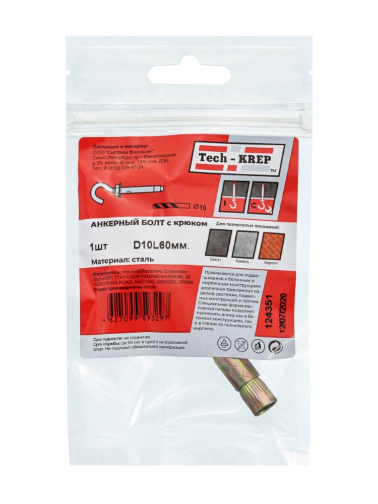 Анкерный болт с гайкой 10х60(65) от Tech-Krep представляет собой надежный крепежный элемент, предназначенный для создания прочных соединений в различных строительных конструкциях. Изготовлен из высококачественной стали с антикоррозийным покрытием, что обеспечивает долговечность и устойчивость к внешним воздействиям. В комплекте поставляется гайка, упрощающая процесс установки. Подходит для работы с бетоном, кирпичом и другими твердыми материалами.