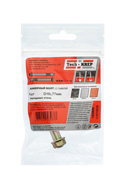 Анкерный болт с гайкой размером 10х77 мм от Tech-Krep представляет собой надежный крепежный элемент, предназначенный для создания прочных соединений в строительных конструкциях. Изготовлен из высококачественной стали с антикоррозийным покрытием, что гарантирует долговечность и устойчивость к внешним воздействиям. Болт оснащен гайкой, которая обеспечивает удобство монтажа и надежную фиксацию. Упаковка содержит 1 штуку, что удобно для точечного использования. Подходит для работы с бетоном, кирпичом и другими твердыми материалами.