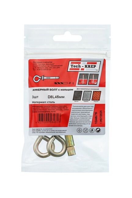Анкерный болт с кольцом 8х45 (3 шт) - пакет Tech-Krep в Вяземский