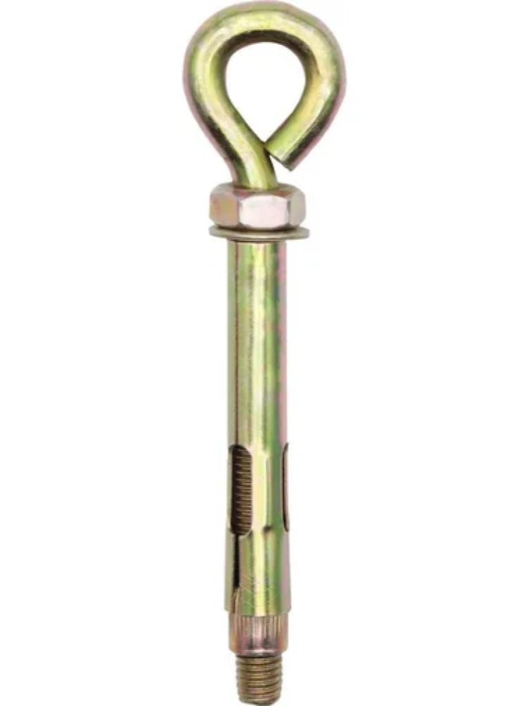 Анкерный болт с кольцом для крепления тяжелых подвесных конструкций к плотным строительным материалам. Анкер с кольцом 8×40 мм: надёжное крепление к бетону и кирпичу, оцинкованная сталь, простая установка, выдерживает большие нагрузки.