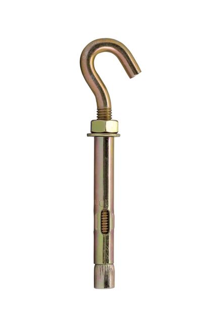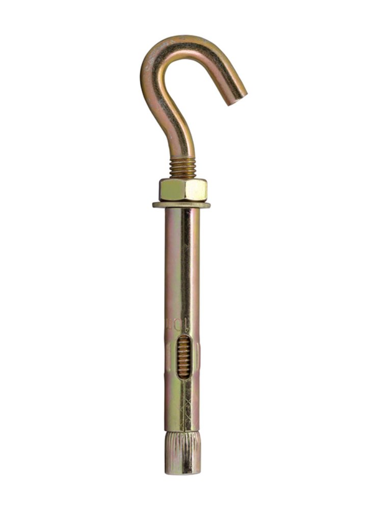 Анкерный болт с крюком для крепления тяжелых подвесных конструкций к плотным строительным материалам. Анкерный болт с крюком М8, 10×60 мм, для надежного крепления в бетоне и кирпиче. Прочный материал, антикоррозийное покрытие, простая установка.