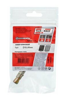 Анкер клиновой 10х80 мм Tech-Krep для надежного крепления в бетоне. Изготовлен из прочной стали с антикоррозийным покрытием, выдерживает высокие нагрузки.