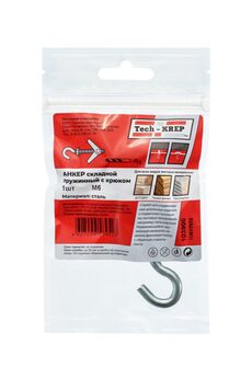 Анкер складной пружинный с крюком М6 (1 шт) Tech-Krep для полых конструкций. Диаметр отверстия 8 мм, сталь с антикоррозийным покрытием, высокая нагрузка.