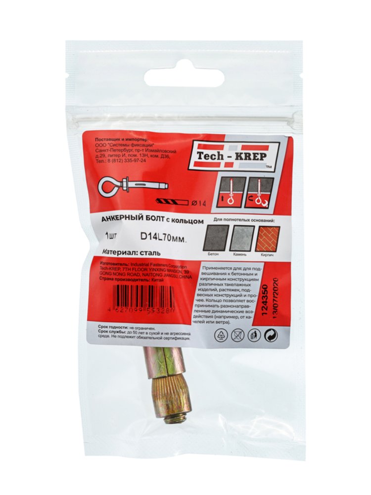 Анкерный болт с кольцом 14х70 (1 шт) - пакет Tech-Krep в Вяземский