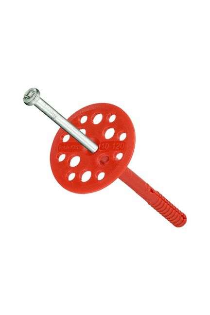 Дюбель крепления теплоизоляции с пластиковым гвоздём. Материал - полипропилен Борт – потайной. Дюбель предназначен для крепления легких термоизоляционных материалов к бетонному или кирпичному основанию. Шляпка дюбеля способствует надежному удержанию материала теплоизоляции, препятствуя прорыву в месте крепления. Ребра перед распорной зоной препятствуют проваливанию дюбеля в просверленное отверстие.