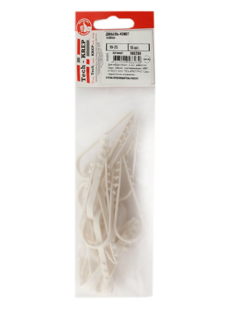 Дюбель-хомут из нейлона размером 19-25 мм в упаковке по 15 штук от Tech-Krep предназначен для надёжного крепления проводов, кабелей и труб к различным поверхностям. Изготовлен из высококачественного нейлона, что обеспечивает устойчивость к механическим повреждениям, коррозии и температурным перепадам. Конструкция хомута позволяет быстро и легко установить крепление без дополнительных инструментов, обеспечивая прочную фиксацию. Подходит для использования как в бытовых, так и в профессиональных условиях.