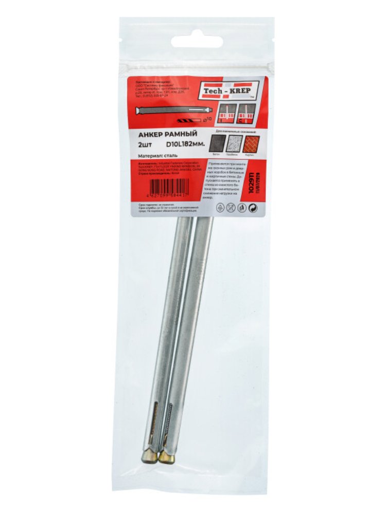 Металлический рамный дюбель 10х182 мм от Tech-Krep предназначен для надежного крепления тяжелых конструкций к основаниям из бетона, кирпича и других материалов. Изготовлен из прочной стали с антикоррозийным покрытием, что обеспечивает долговечность и стойкость к внешним воздействиям. Конструкция дюбеля гарантирует высокую прочность фиксации за счет распирающего эффекта при затягивании. В упаковке 2 штуки, что удобно для небольших монтажных работ.