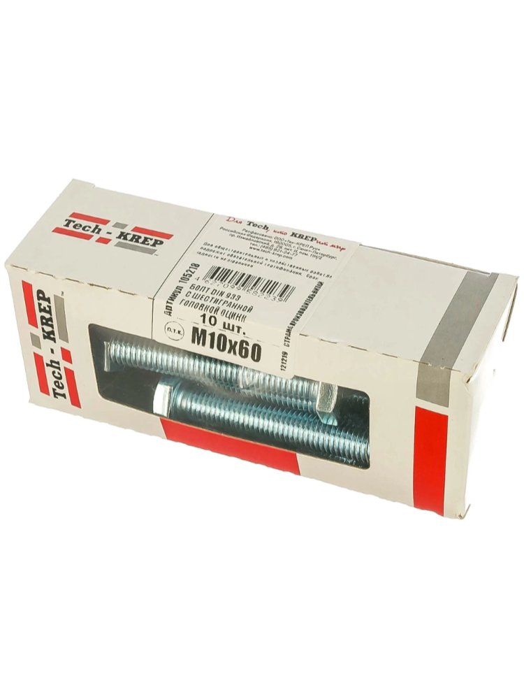 Болт с шестигранной головкой DIN 933, размером М10х60, представляет собой надежный крепежный элемент, изготовленный из высококачественной стали с оцинкованным покрытием, что обеспечивает защиту от коррозии и долговечность. Длина болта составляет 60 мм, диаметр резьбы - 10 мм, что делает его универсальным для различных конструкций. Упаковка включает 10 штук и поставляется в удобной коробке с окном от бренда Tech-Krep, что упрощает хранение и транспортировку. Этот крепеж соответствует строгим стандартам качества и подходит для профессионального и бытового использования.