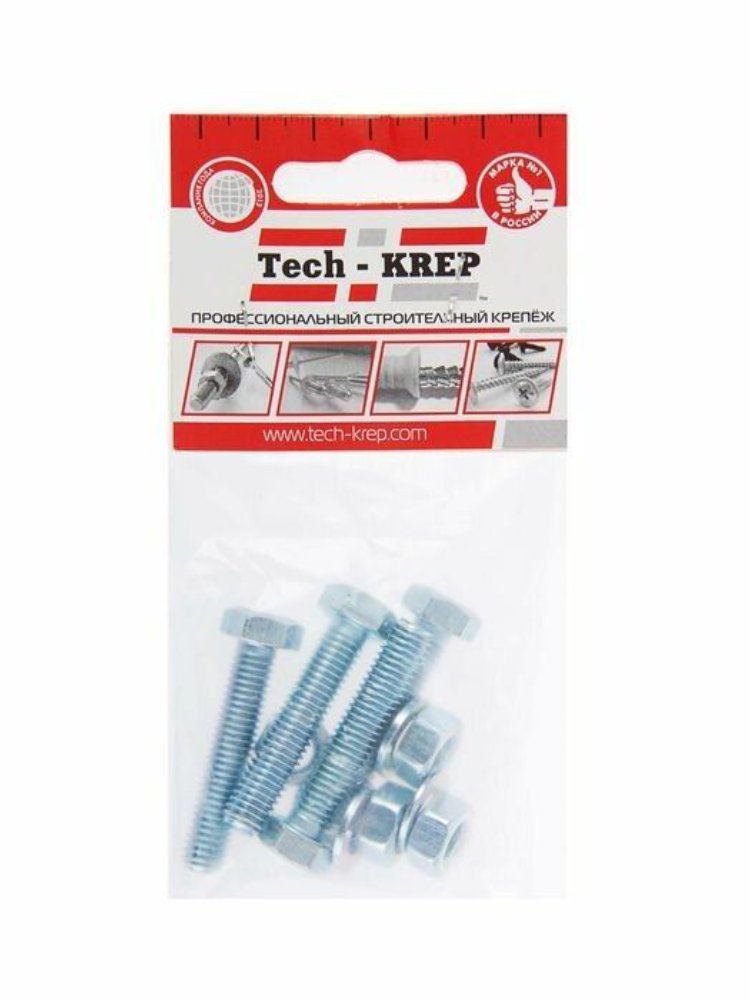 Комплект крепежных изделий включает 4 болта с шестигранной головкой DIN933, оцинкованные, размером М8х50, а также соответствующие гайки и шайбы. Изготовлены из высокопрочной стали с защитным цинковым покрытием, что обеспечивает устойчивость к коррозии и долговечность. Используются для надежного соединения деталей и конструкций, подходят для работы с различными материалами. Удобная упаковка в виде пакета от бренда Tech-Krep упрощает хранение и транспортировку.