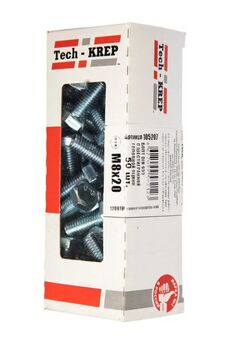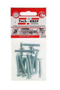 Болт DIN 933 с шестигранной головкой М8х20, оцинкованный, 12 шт. в упаковке Tech-Krep. Прочный, устойчивый к коррозии крепеж для надежных соединений.
