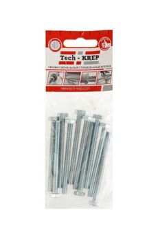 Болт DIN933 М6х50 с шестигранной головкой, оцинкованный, 14 шт. в упаковке Tech-Krep. Прочный, защищен от коррозии, для строительства и ремонта.