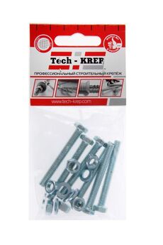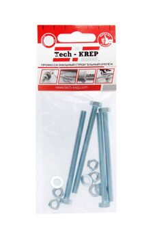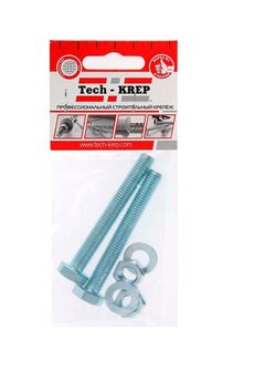 Болт DIN933 М8х100 оцинкованный с шестигранной головкой, в комплекте с гайкой и 2 шайбами, Tech-Krep. Надежный крепеж для строительства и ремонта.