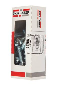 Болт оцинкованный М8х30 с шестигранной головкой DIN 933 от Tech-Krep, 30 шт в коробке с окном. Прочный, устойчивый к коррозии крепеж для строительства и ремонта.
