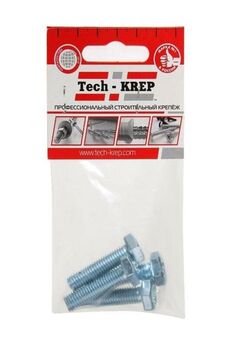 Комплект крепежа Tech-Krep: болт DIN 933 М6х60 с шестигранной головкой, оцинкованный, с гайкой и шайбой (4 шт). Надежный для строительства и ремонта.