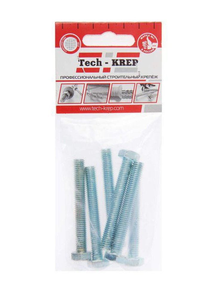 Болт DIN933 с шестигранной головкой, оцинкованный, M8х60, 6 шт. в упаковке Tech-Krep. Прочный, устойчивый к коррозии крепеж для строительства и ремонта.
