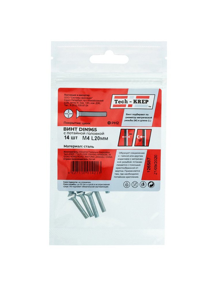 Винт с потайной головкой оцинкованный М4х20 в упаковке 14 штук от Tech-Krep соответствует стандарту DIN965. Изготовлен из прочной стали с оцинкованным покрытием, что обеспечивает защиту от коррозии и увеличивает срок службы крепежа. Потайная головка позволяет устанавливать винт заподлицо с поверхностью, что делает соединение аккуратным и безопасным. Диаметр резьбы составляет 4 мм, длина винта – 20 мм, что делает его универсальным для различных монтажных работ. Используется с крестовым шлицем PH2 для удобной установки. Подходит для соединения элементов в строительстве и ремонте, обеспечивая надежную фиксацию.