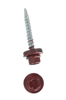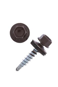 Стальные саморезы с шестигранной со сверловидным наконечником, укомплектованные шайбой с резинкой, для крепления кровельных материалов к деревянной обрещетки. Стальной саморез с антикоррозийным покрытием, EPDM-уплотнением и окраской "шоколад"- 8017, для надёжной установки кровли, по дереву и металлу.