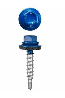 Стальные саморезы с шестигранной со сверловидным наконечником, укомплектованные шайбой с резинкой, для крепления кровельных материалов к деревянной обрещетки. Саморез кровельный 4,8×70 с уплотнителем, цвет ультрамарин, устойчив к коррозии и ультрафиолету. Для металлопрофиля и дерева. Упаковка 100 шт.